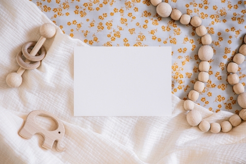 赤ちゃんの目に当たらないように、角を丸くカットしておくとより安心です。厚紙の代わりに無地のメッセージカードを使うのも良いでしょう。
