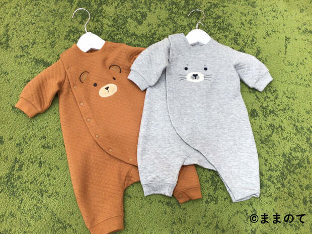 暖かみのあるキルト素材でつくられているカバーオールです。落ち着いたベーシックなカラーなので日常使いもしやすく、ボディスーツに重ねて着ればおでかけ着としても重宝します。秋冬に1着は持っておきたいアイテムといえるでしょう。胸元にデザインされた愛らしいくまやコアラ、あざらしを見るたびにママも赤ちゃんもご機嫌になれそうですね。