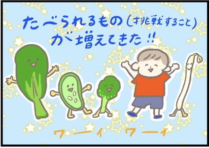 そんなときに思い出されたのが、兄・ほにゅくん(4歳)のこと。ねむちゃんと同じく偏食だったほにゅくんは4歳になり苦手な野菜に挑戦することが増えたそうですよ。偏食になったのも成長過程のひとつととらえて、焦る必要はないことを自分に言い聞かせるつぶみさんでした。