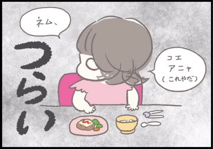 赤ちゃんのころは食事に積極的だったねむちゃんですが、自我の芽生えとともに偏食になってしまったとのこと。つぶみさんはテーブルの上にケチャップで「うそだ」とダイイングメッセージを残すほどショックな様子です(笑)。
