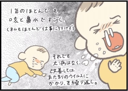 今回はじめてほにゅくんが感染してしまった「ヒトメタニューモウイルス」は主に春先に流行することが多いウイルスです。咳や鼻水、高熱などインフルエンザやRSウイルスと似たような症状がでるようなので、気になることがあればかかりつけのお医者さんにご相談くださいね。