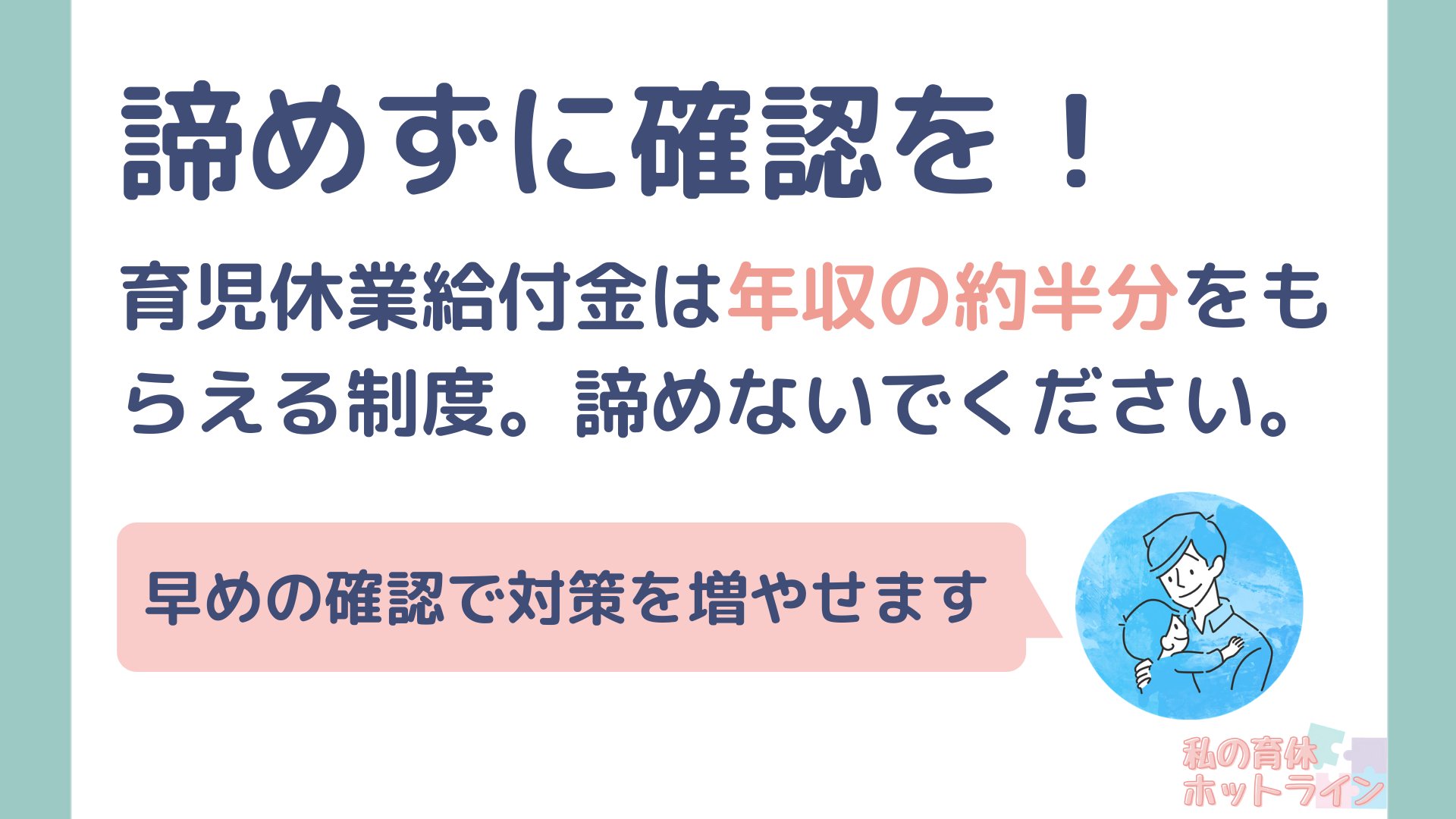 育児休業給付金は満額受給すれば年収の約半分をもらえる制度。受け取れるなら絶対に受けとるべき給付金です。
