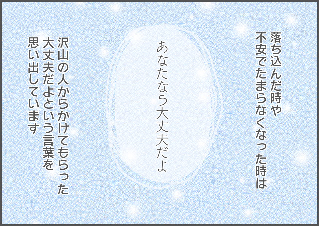 そんな葛藤を抱えながらも、「今幸せかどうか」という大切な気持ちに気づき、シングルマザーの道を選んだおかめさん。たくさんの人からの「あなたなら大丈夫」という暖かい言葉は、不安でいっぱいな心もふっと軽くなりますね。