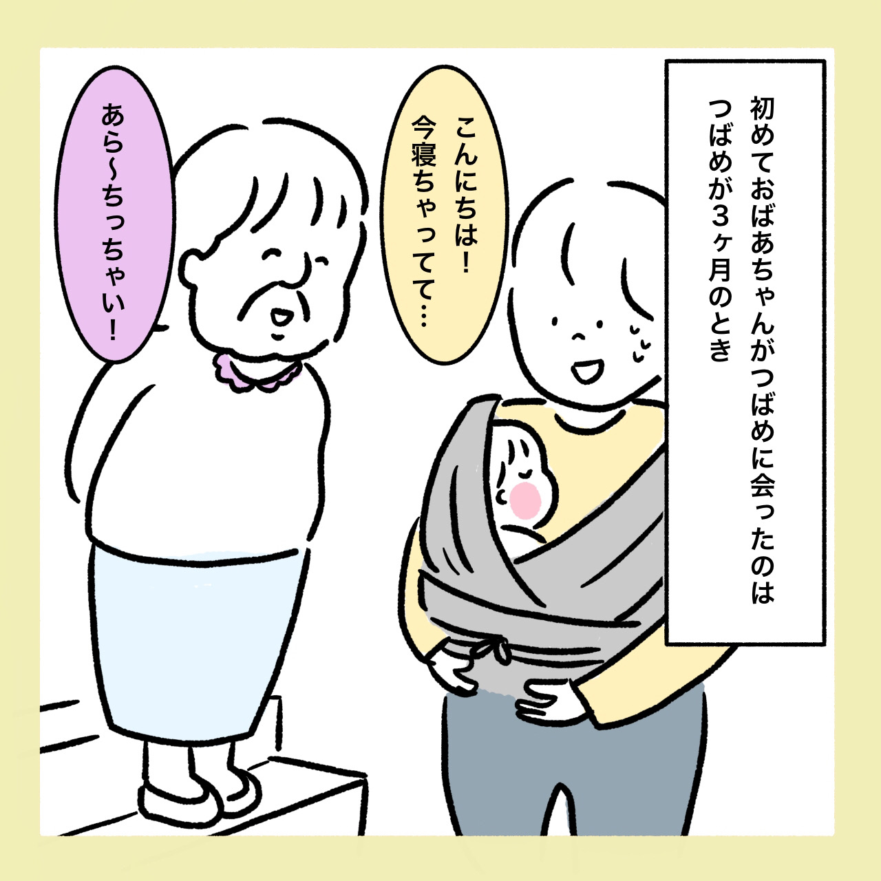 ご近所に住むおばあちゃんと挨拶をするときに限って、かわいい笑顔を披露することができずにいたつばめちゃん。しろぺんきさんがもどかしく感じている気持ちが伝わってきますね(笑)。10ヶ月目にしてようやく本領を発揮することができ、おばあちゃんをメロメロにすることに成功したのでした。