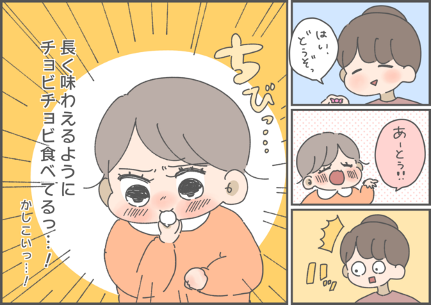 育児マンガ家おかめ(@omame_okame)さんの日常の出来事や奮闘をマンガでお届けします。1歳9ヶ月になる長女おまめちゃんに、このところハマっているお菓子があるそうです。食べすぎを心配したママの気持ちを知って、おまめちゃんが覚えた裏ワザとは…?