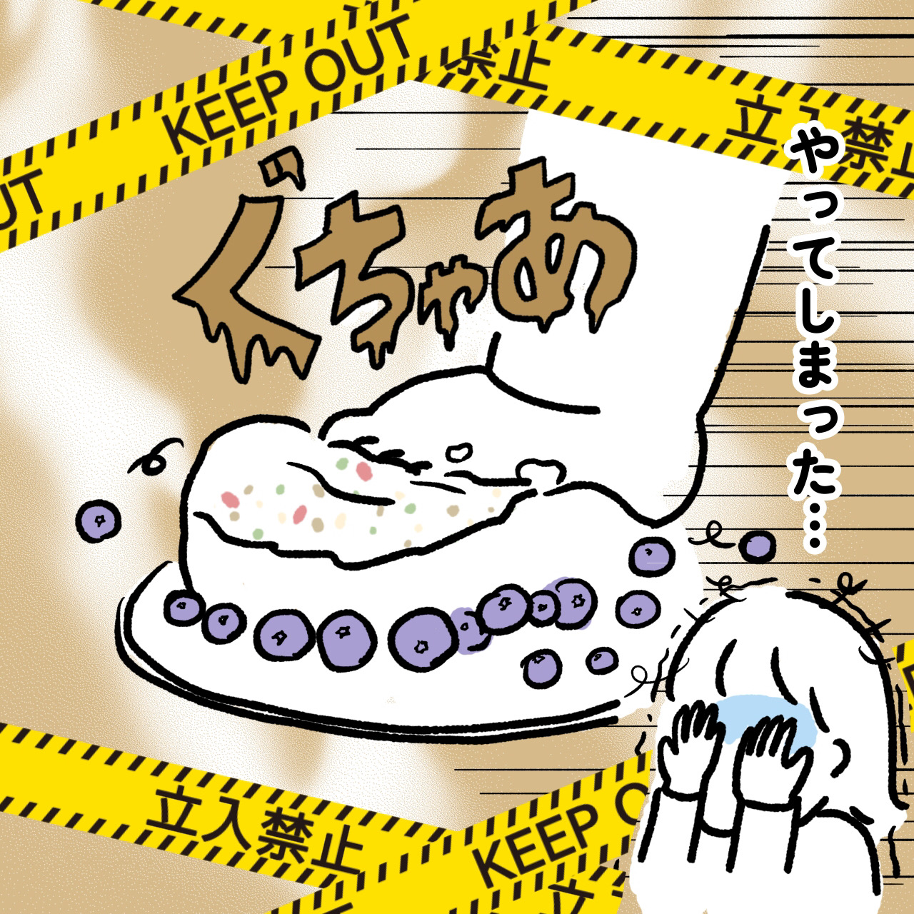まさか踏まれるとは思っていませんでした!(泣)食べやすいように床にケーキを置いたのが敗因です…。これからやられる方は必ず机の上で!