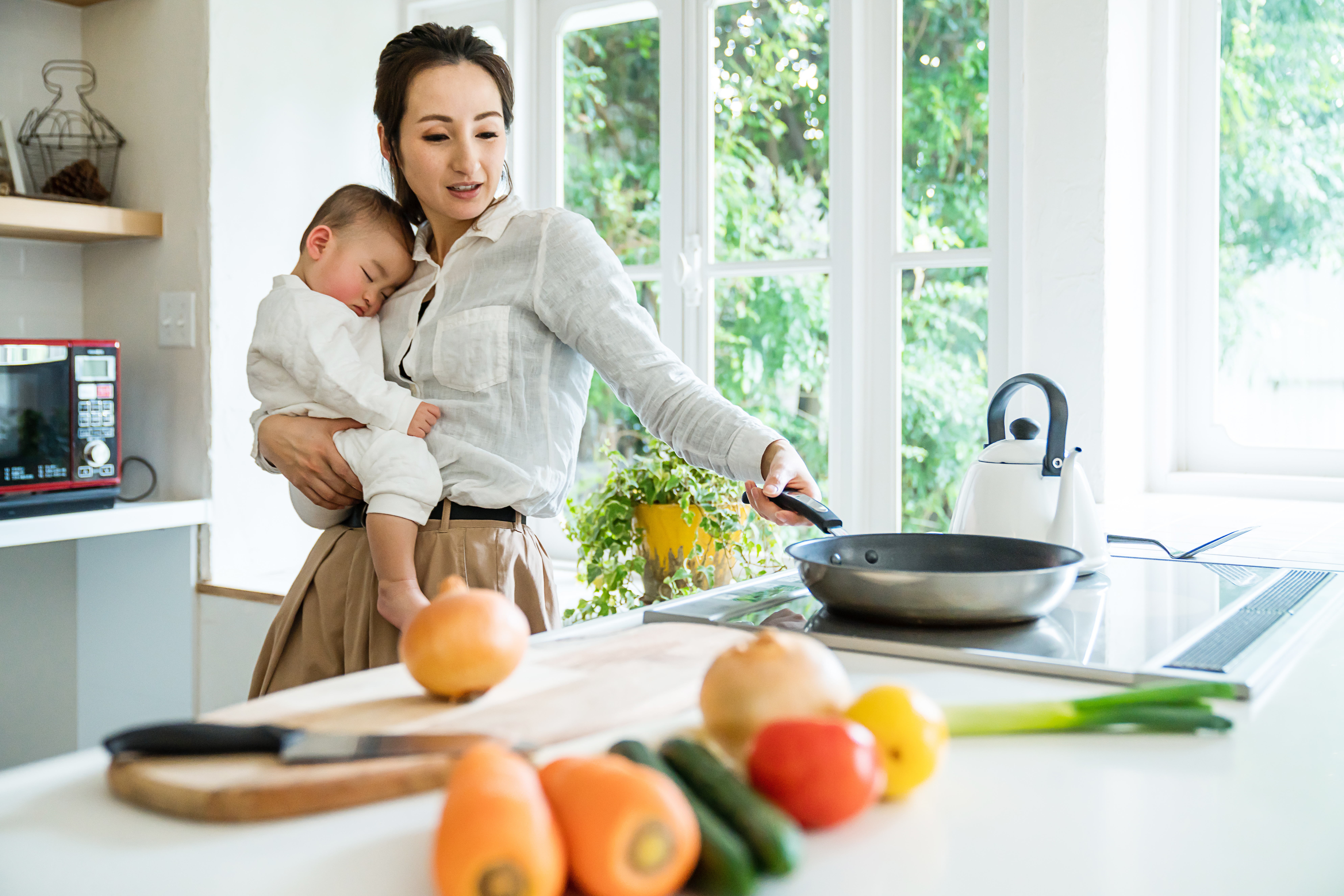 パパが育休を取れない、または育休が短い場合、ママのワンオペ育児が想定されます。ワンオペ育児の場合、家事をしているあいだパパやおじいちゃん・おばあちゃんに赤ちゃんを見ていてもらうことができません。