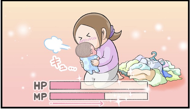 大人気にくきゅうぷにおさん(@nikukyupunio)の漫画をご紹介します。赤ちゃんと過ごす毎日は愛おしさでいっぱいですが、睡眠不足や慣れないお世話の連続に疲弊してしまうママは多いでしょう。にくきゅうぷにおさんはぷにおくん(当時3ヶ月)のお世話で気力体力ともにすり減っていましたが、回復の呪文をかけられた瞬間に…?