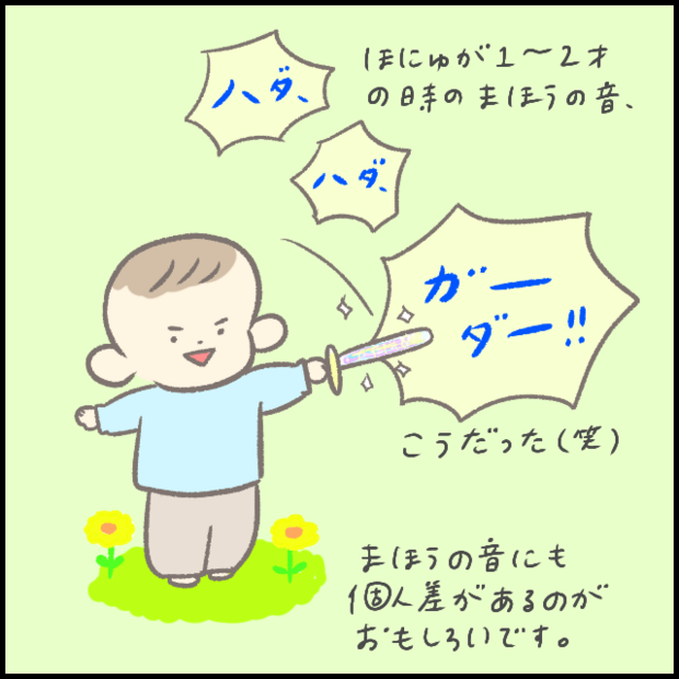 ちなみに兄・ほにゅくんのときは「ハダハダガーダー!」だったとのこと。どちらもオリジナルの掛け声のようですよ。どんなに忙しくてもこんなに可愛すぎる魔法をかけられたら、思わず振り返ってしまいそうですね。…魔法の効果はあるのかも?