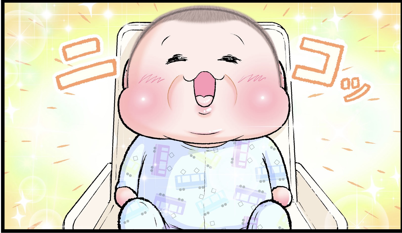 母のモグモグタイムに微笑んでくれる時がよくありましたが、お腹が空いてる時はさすがに飯テロになるようでしたw