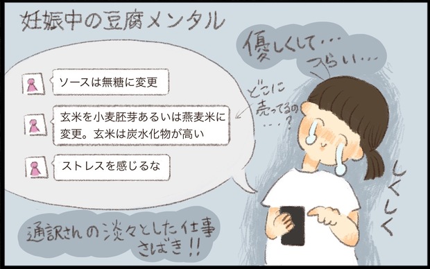 「甘いものはダメ、最悪赤ちゃんの心臓が止まる。食後30分は歩いて」など制限が厳しく、通訳の方を通して伝えられる言葉の表現がストレートで本当に怖かったです。