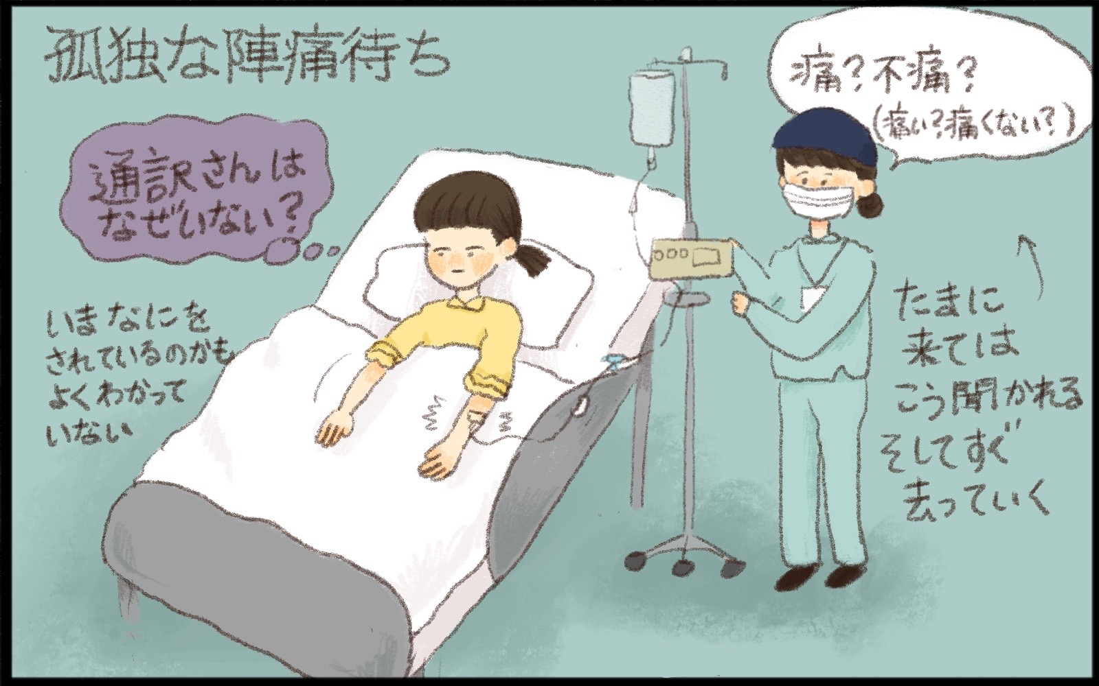 「少し張っている」というのを伝えたくても翻訳ツールではうまく翻訳できず、言葉の壁を感じました。部屋に戻ったあと夫や子どもたちに会えてホッとしたものの、その日のうちに産むことができず、なんだか申し訳ない気持ちになったことを覚えています。