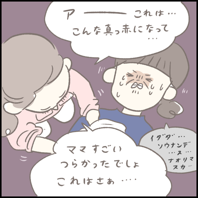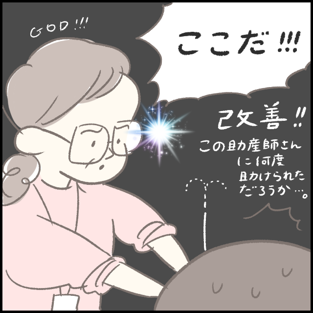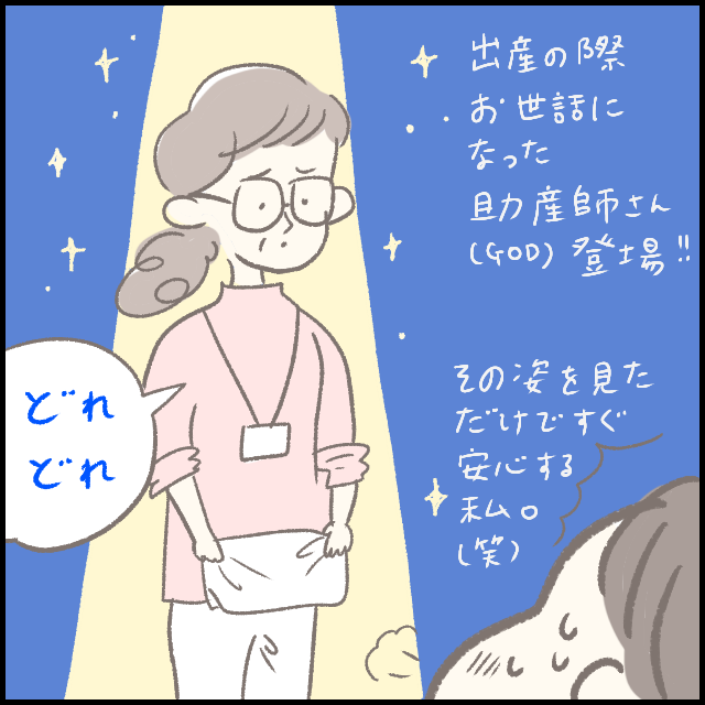 赤ちゃんの母乳の飲みが悪くなったタイミングで、乳腺炎になってしまったつぶみさん。母乳外来で再会したのは、出産のときにお世話になったGOD的存在のベテラン助産師さん。「ここだ!」の一言で、乳腺炎からも救ってくれたのでした。