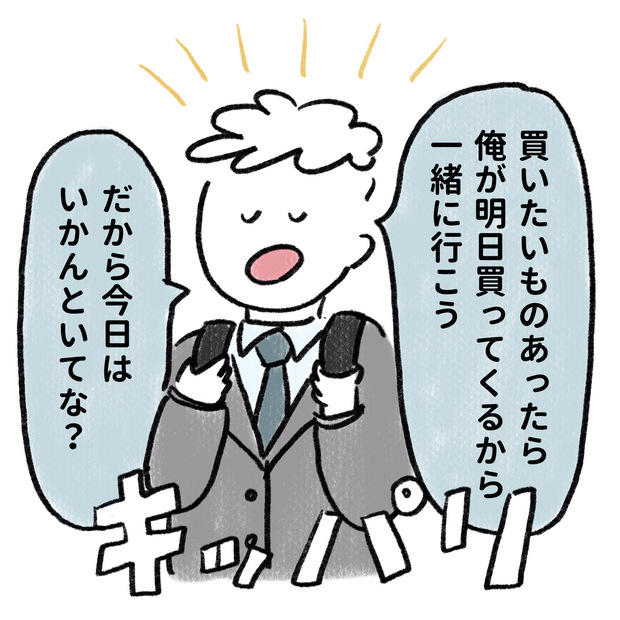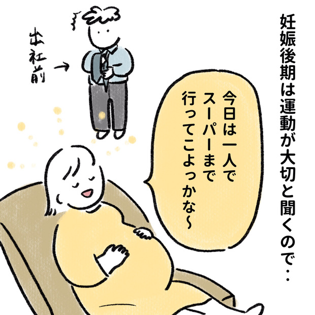 妊娠後期になり、運動がてらスーパーへ行こうとしたしろぺんさんに、過保護プレパパからストップが!体調を気遣うあまり、かるい軟禁状態となってしまったのでした(笑)。