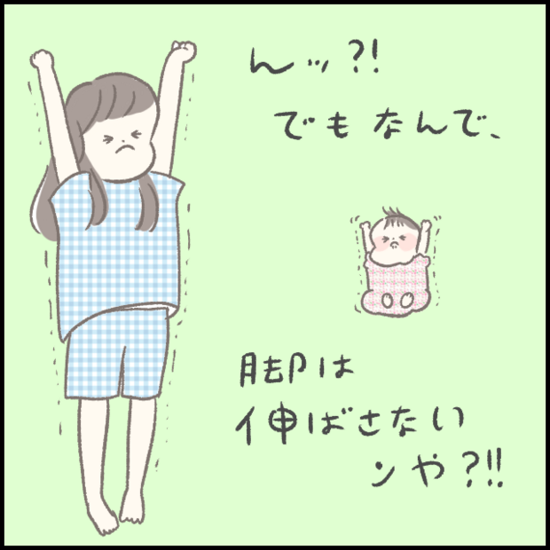 SNSで大人気つぶみさん(@tbys141122)の育児マンガです。新生児頃の赤ちゃんは、寝起きなどのタイミングでバンザイのポーズをしながら伸びをすることがありますよね。とても愛らしくて、ずっとみていたくなるママパパは多いのではないでしょうか。さて、つぶみさんは赤ちゃんの伸びをみてふと疑問を感じたそうですよ。