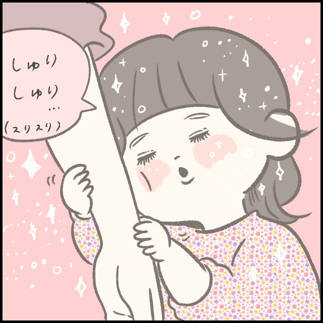 赤ちゃんが寝ている姿をじっと見つめるつぶみさん。目が覚めたときにうーんと伸びをするポーズがかわいくてメロメロになりつつ、「手は伸ばすのに、なんで脚は伸ばさないんだ?」と疑問に感じるのでした(笑)。