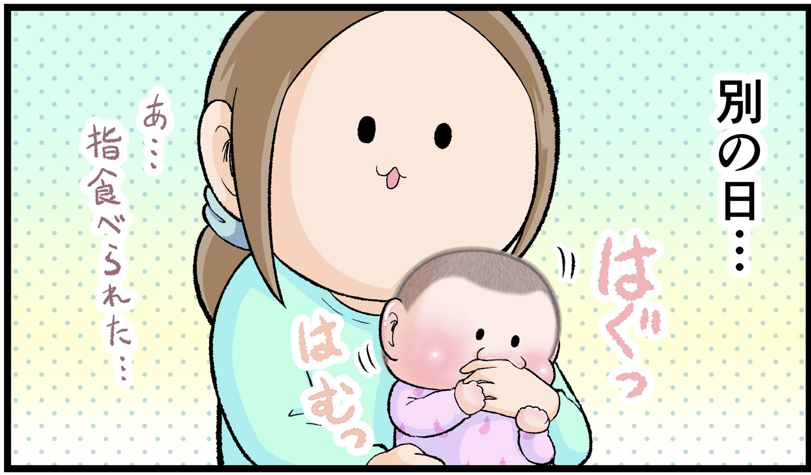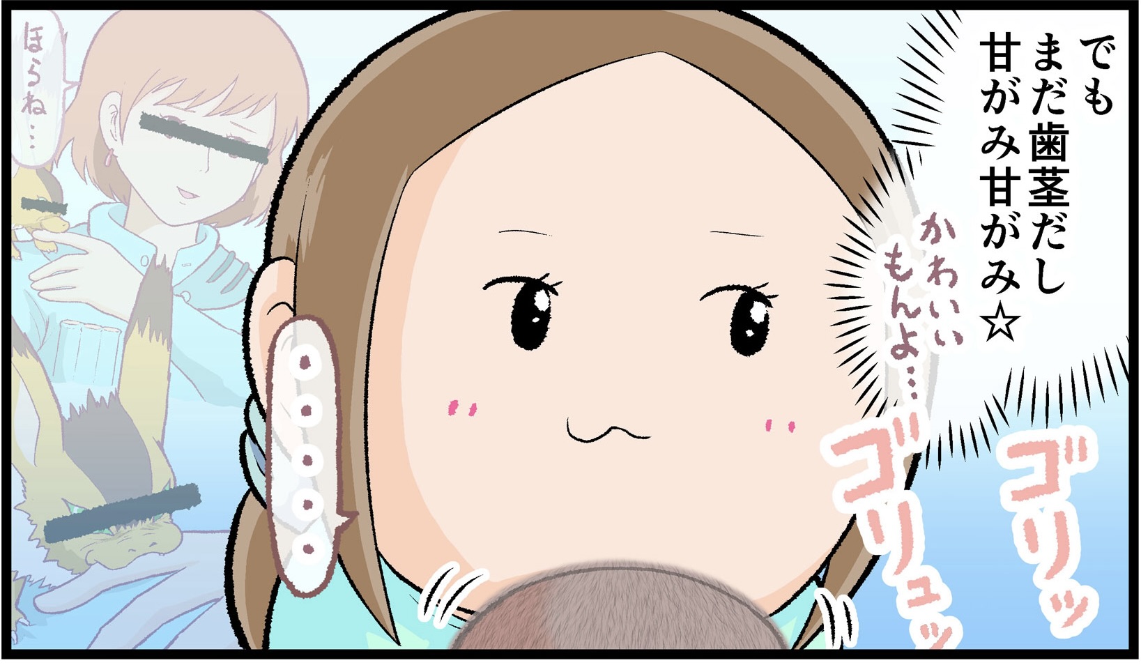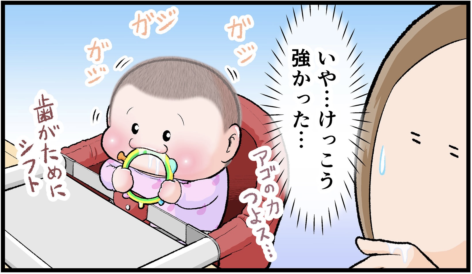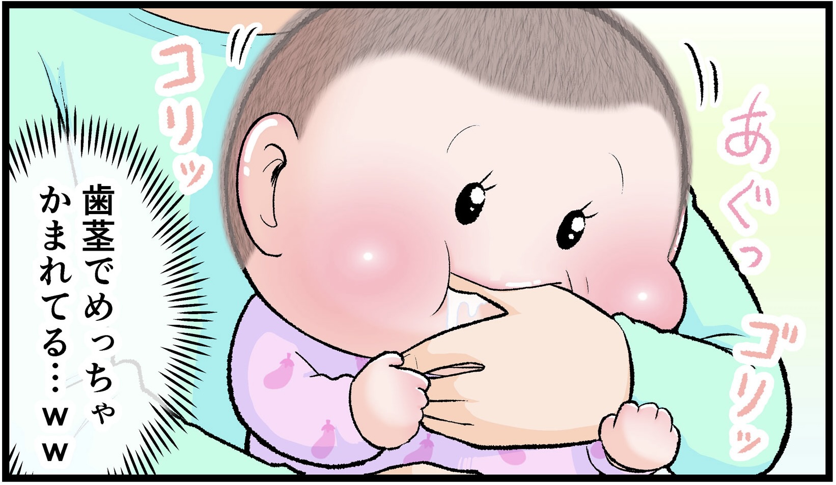 よくこちらの手をガシッとつかんで口に持っていくことがありましたが、赤ちゃんって歯茎の段階でこんなに噛む力が強いのか…と地味に感動していましたw