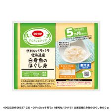 そこで活躍するのが、白身魚のほぐし身です。北海道産のまだらを蒸して加熱したものを小さくカットし、パラパラに凍結してあるので、使いたい分だけ解凍して使えます。野菜とあえたり、煮物にしたりといろいろなレシピに活用できますよ。