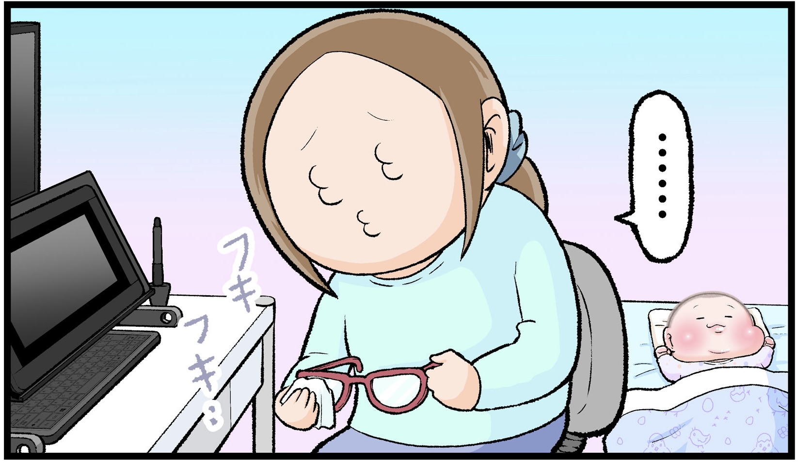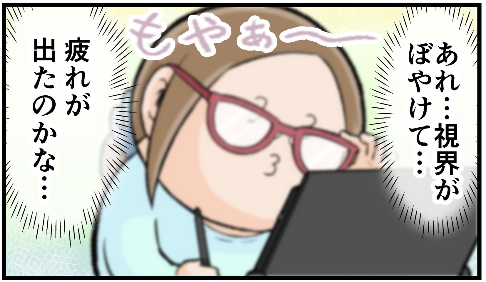 大人気にくきゅうぷにおさん(@nikukyupunio)の漫画をご紹介します。自宅ではメガネを愛用しているというにくきゅうぷにおさん。いつものように、ぷにおくん(当時生後3ヶ月)とのコミュニケーションを楽しんでから仕事に戻ると、なんだか目の前がもやもやぁ〜。視界が霞むのは目が疲れているせい?それとも…?