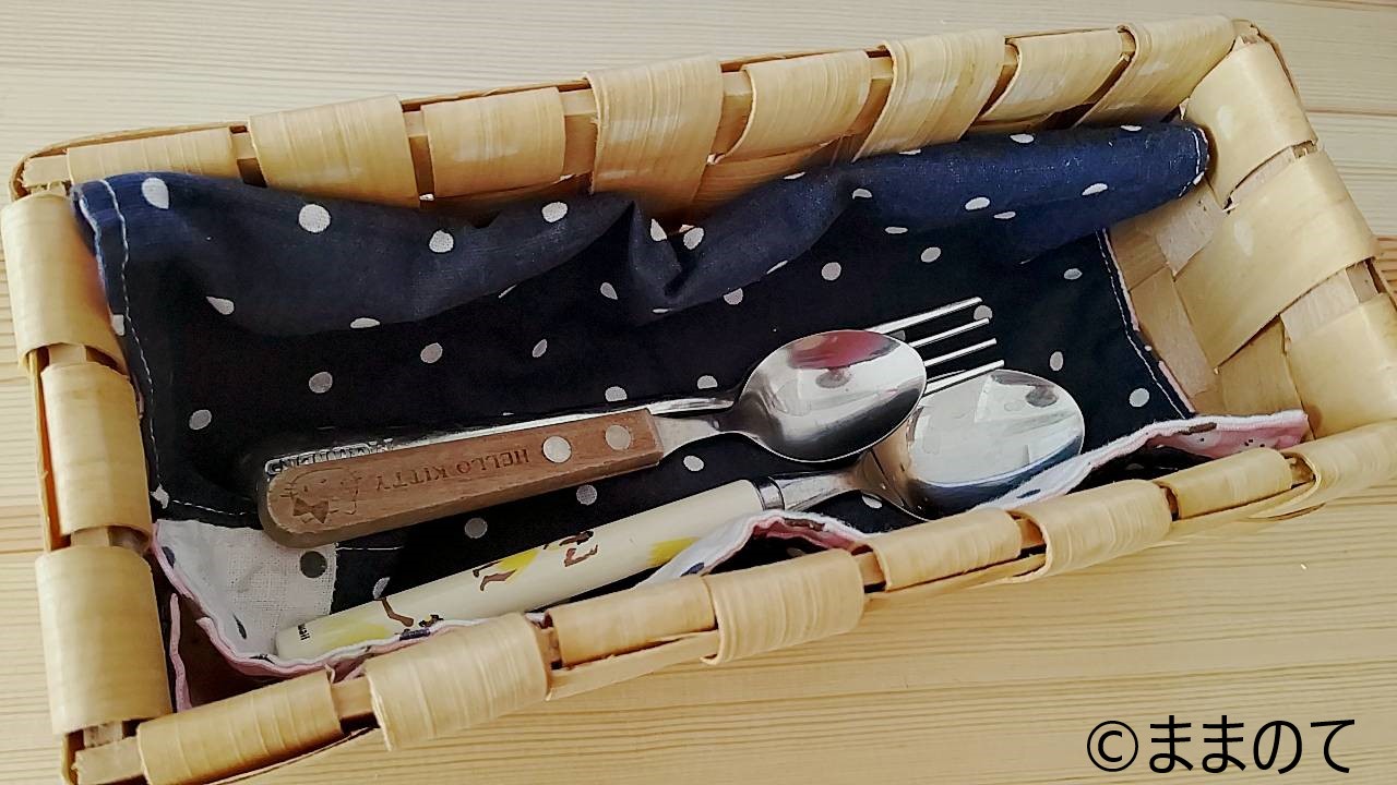 小物入れにもなる、かごのカトラリーボックスです。ランチョンマットなどをしいてフォークやスプーン、お箸などを入れるとテーブルが華やぎますよ。外食気分も味わえるのではないでしょうか。