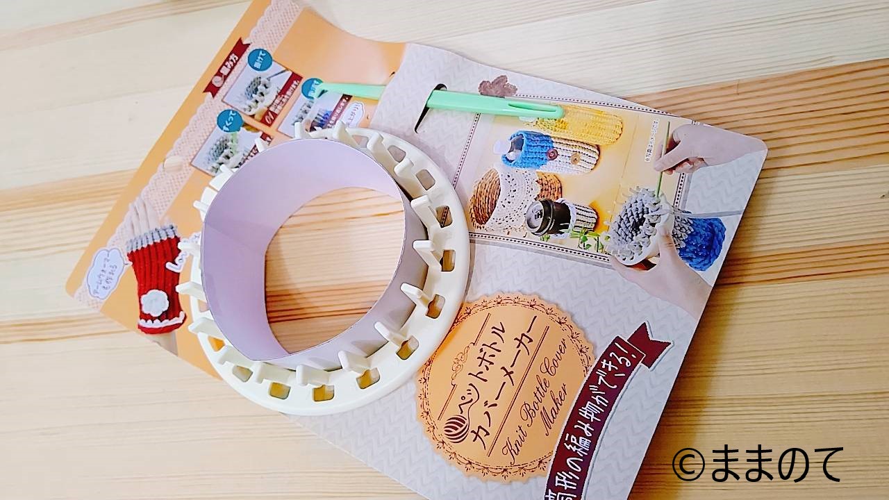 レッグウォーマーやアームウォーマーが作れる、編み物メーカーもおすすめです。紹介している商品はペットボトルカバーが作れるタイプですが、店舗によってはニット帽が作れる大きめタイプも販売されていますよ。