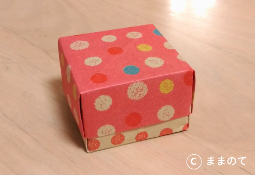 折り紙を使って箱をふたつ作り重ねると、かわいいふた付きの箱ができ上がります。下の箱とふたの色や柄を変えると、イメージの違う箱に仕上がるでしょう。折り上げる位置を変えれば、箱やふたの大きさを変えることができますよ。