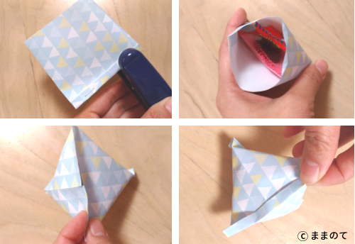 4.袋の口を折り返し、ホッチキスでとめて完成です。
