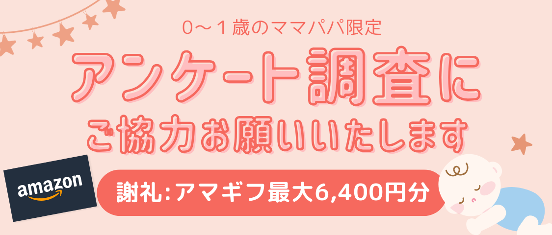「うちの子、成長は順調かな?」 そんなママ・パパの疑問に寄り添う、赤ちゃんの発達に関するオンラインアンケート調査です。スマホで簡単に参加でき、成長の目安がわかるほか、Amazonギフトカードの謝礼もあります。