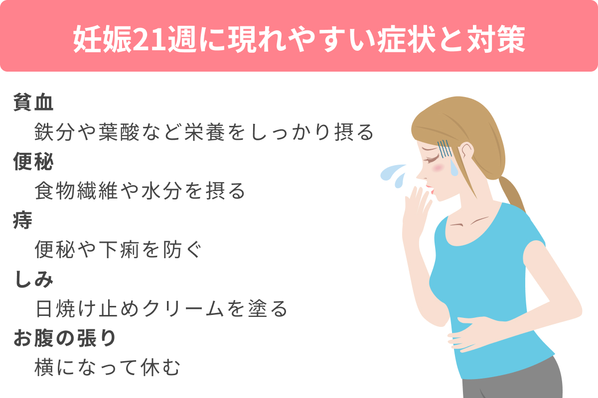妊娠21週にあらわれやすい症状 貧血、便秘、お腹の張り…