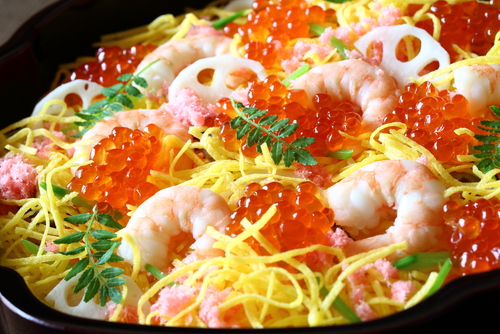 ちらし寿司は、大皿に盛りつけるだけで豪華です。子どもの好きな具材を乗せてあげると喜びますよ。ケーキの型にちらし寿司を詰め、ちらし寿司ケーキを作るのもおすすめです。ちらし寿司ケーキは見栄えが良く、誕生日のお祝いにはぴったりのメニューでしょう。
