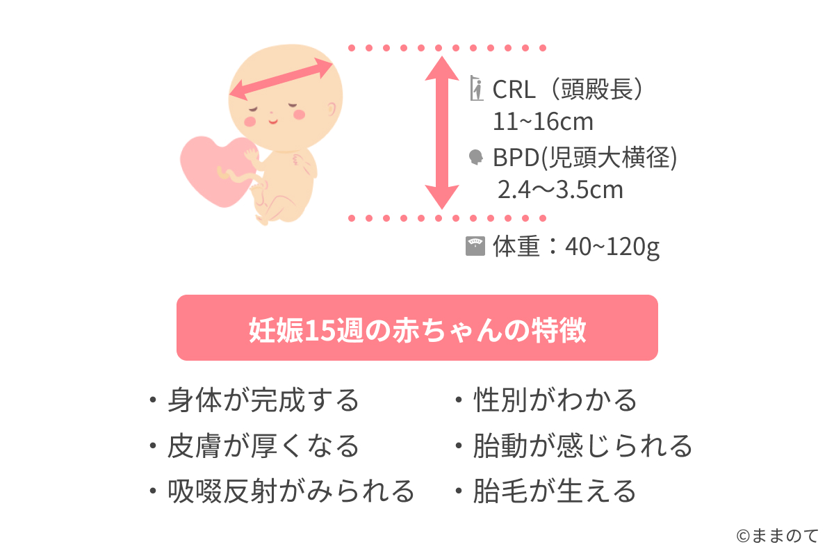 妊娠15週の赤ちゃんの基礎情報 身長、BPD、体重、発達