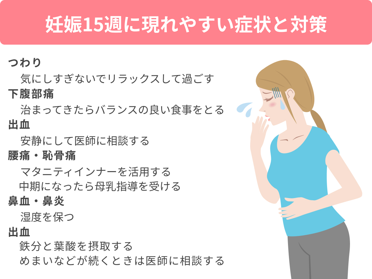 妊娠15週にあらわれやすい症状 胸の張り、鼻血、貧血…