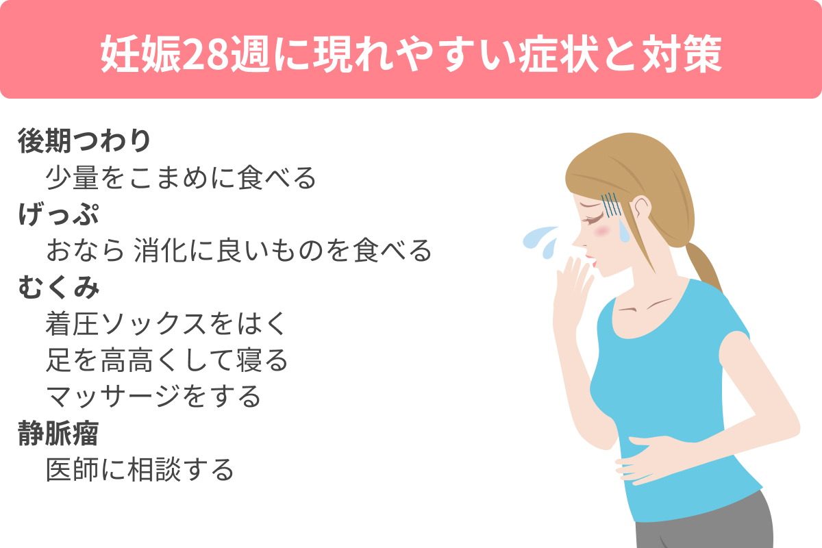 妊娠28週にあらわれやすい症状 後期つわり、げっぷ、むくみ…