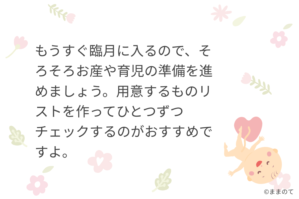 妊娠28週は妊娠後期の最初の週です。体調が良ければ、そろそろ出産準備を始めたいころですね。身体が重くなるにつれて動きにくくなります。また予定より早く生まれることも考慮する必要があります。このため今のうちからそろえておくと楽でしょう。