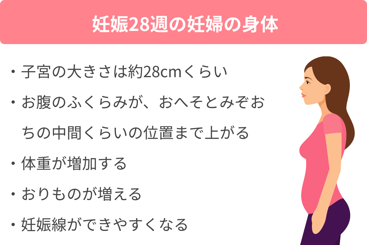 妊娠28週|赤ちゃんの成長と体重、妊婦の身体の変化・過ごし方