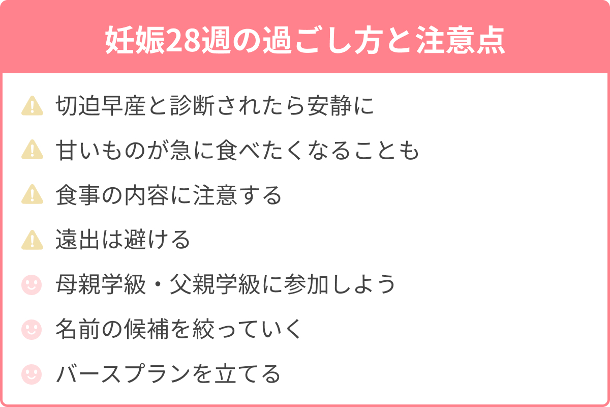 早産は全妊娠の約6%(※1)に発生するといわれています。妊娠28週で万が一早産となっても、後遺症などのリスクはありますが生育は可能な場合が多いです。ママが重度の妊娠高血圧症候群、前置胎盤、常位胎盤早期剥離と診断されている場合、人工的に早産にさせるケースもあります。