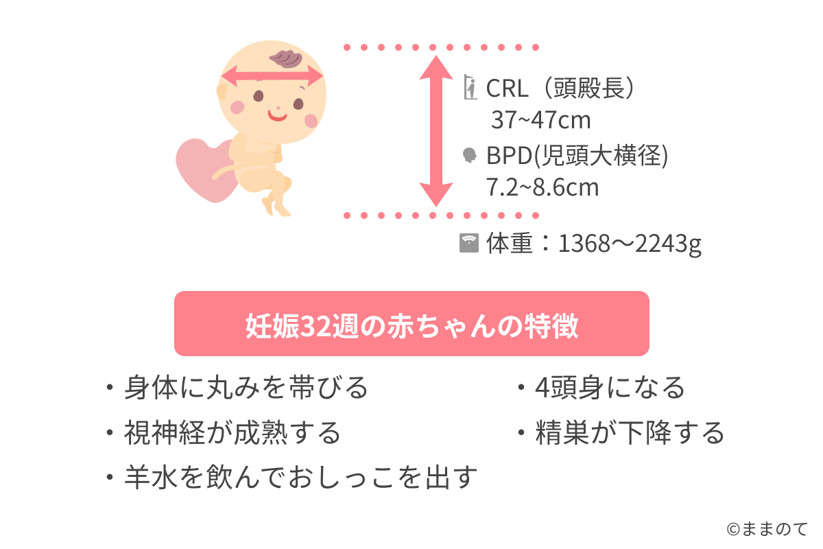 妊娠32週の赤ちゃんの基礎情報 身長、BPD、体重、発達