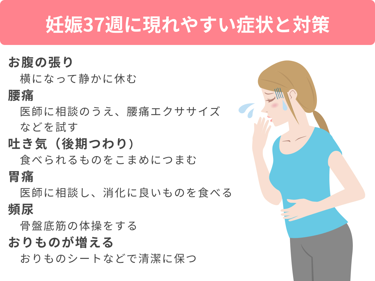 妊娠37週にあらわれやすい症状 お腹の張り、吐き気、腰痛…