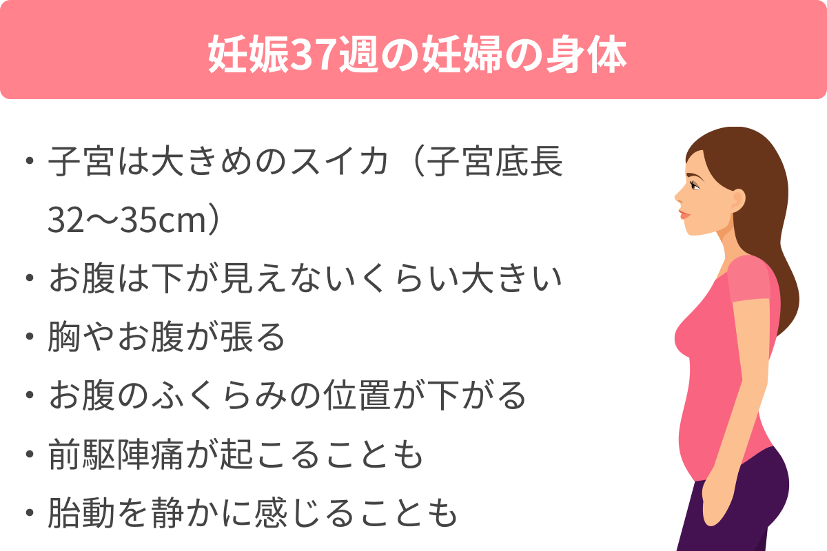 妊娠37週|赤ちゃんの成長と妊婦の身体の変化・過ごし方【イラスト・写真付き】