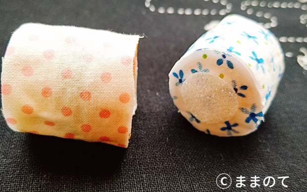 まずは誰でも簡単に作れるおもちゃから紹介します。このおもちゃは、中に米など入れ、ペットボトルのキャップをふたつあわせるだけで完成です。両端に面ファスナーをつけるとくっつけて遊ぶおもちゃに、箱に穴を開ければ入れて遊ぶおもちゃにも変身します。