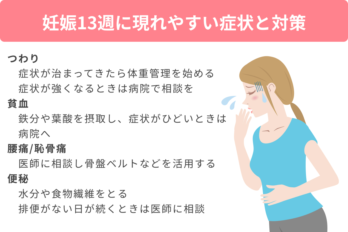 妊娠13週にあらわれやすい症状 つわり、貧血、腰痛…