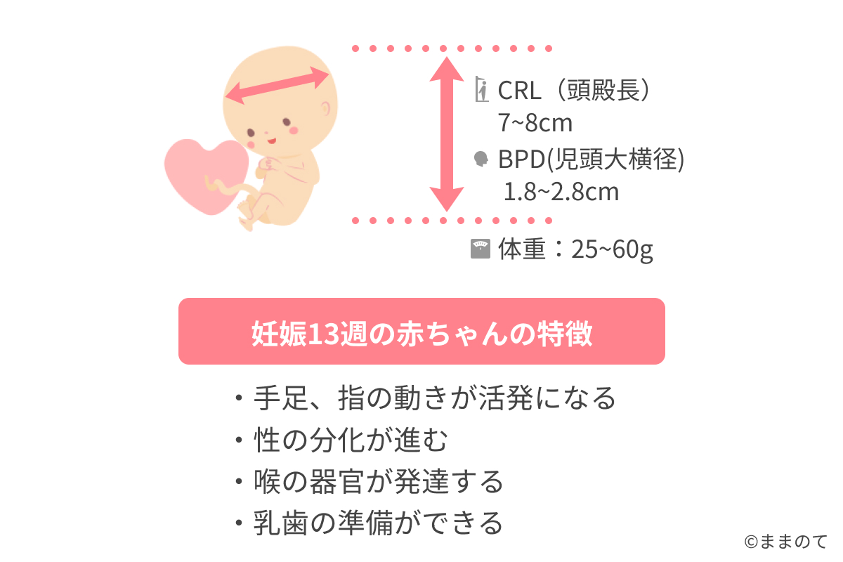 妊娠13週の赤ちゃんの基礎情報 身長、BPD、体重、発達