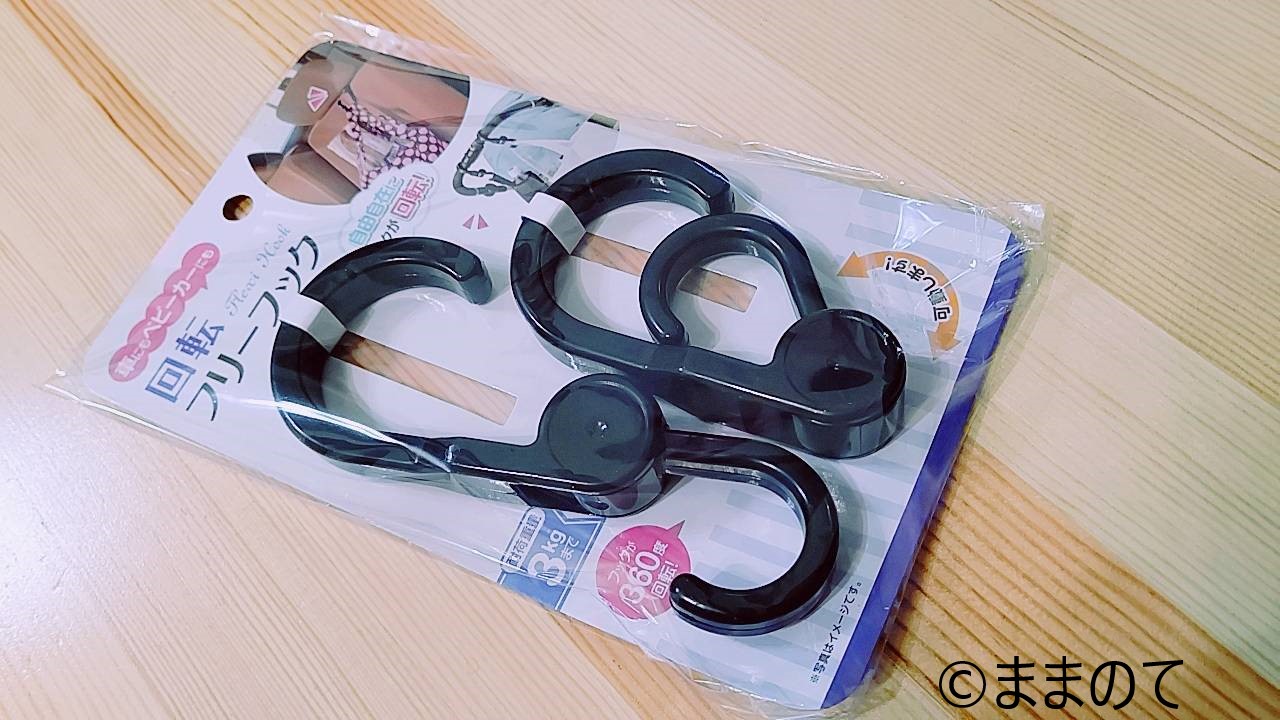 100均のベビーグッズで人気の商品といえばベビーカーフックでしょう。セリアのベビーカーフックは、マイメロディなどキャラクターデザインのものもありますよ。360℃回転する上、ひったくり防止のロック機能付きなので、おでかけにも安心ですね。