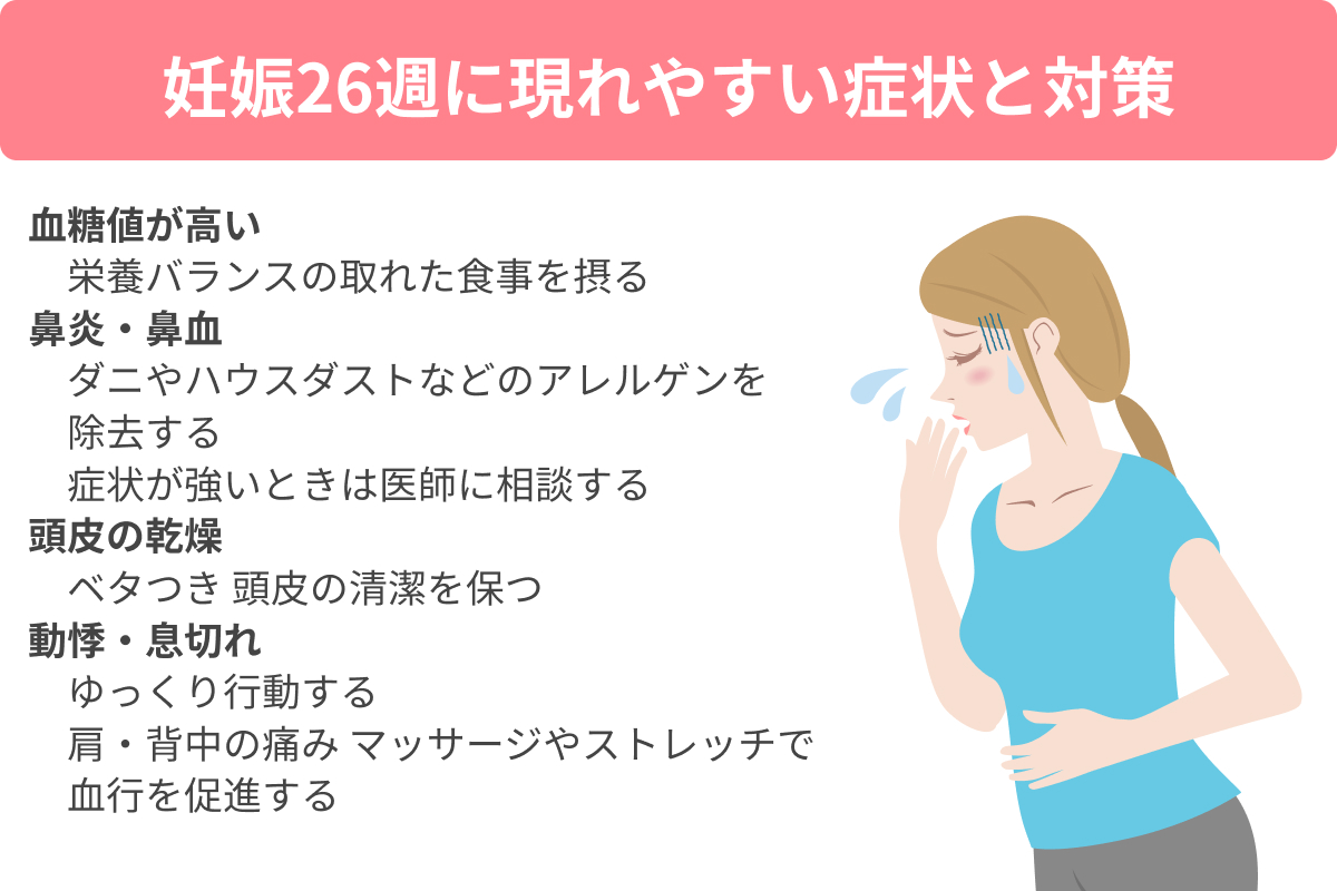 妊娠26週にあらわれやすい症状 鼻炎、頭皮の乾燥、息切れ…