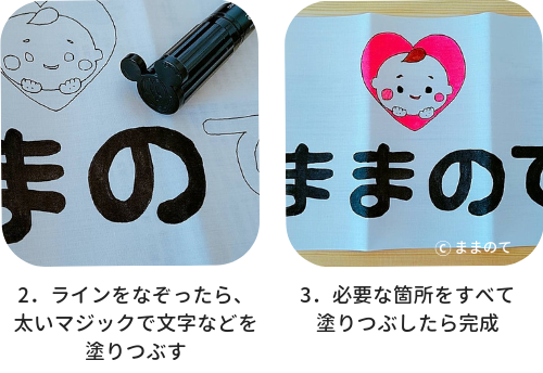 2.ラインをなぞったら、太いマジックで文字などを塗りつぶす