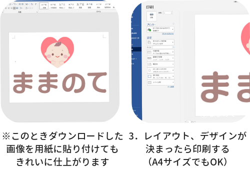 3.レイアウト、デザインが決まったら印刷する(A4サイズでもOK)