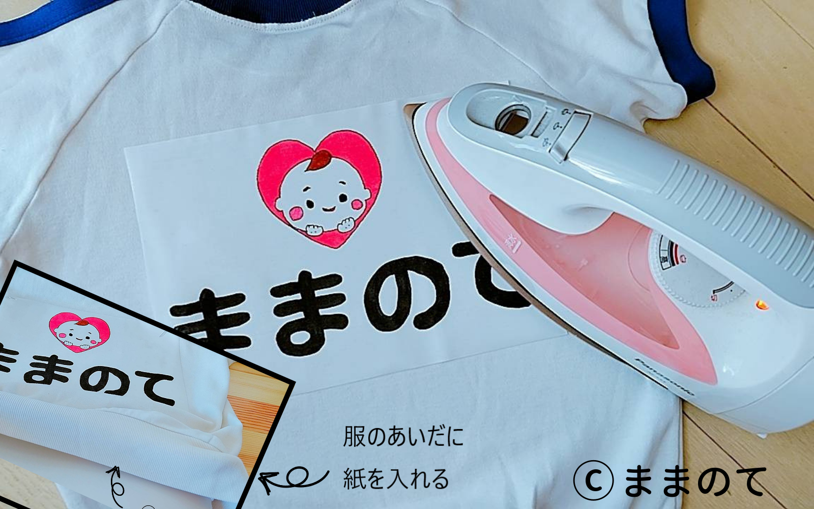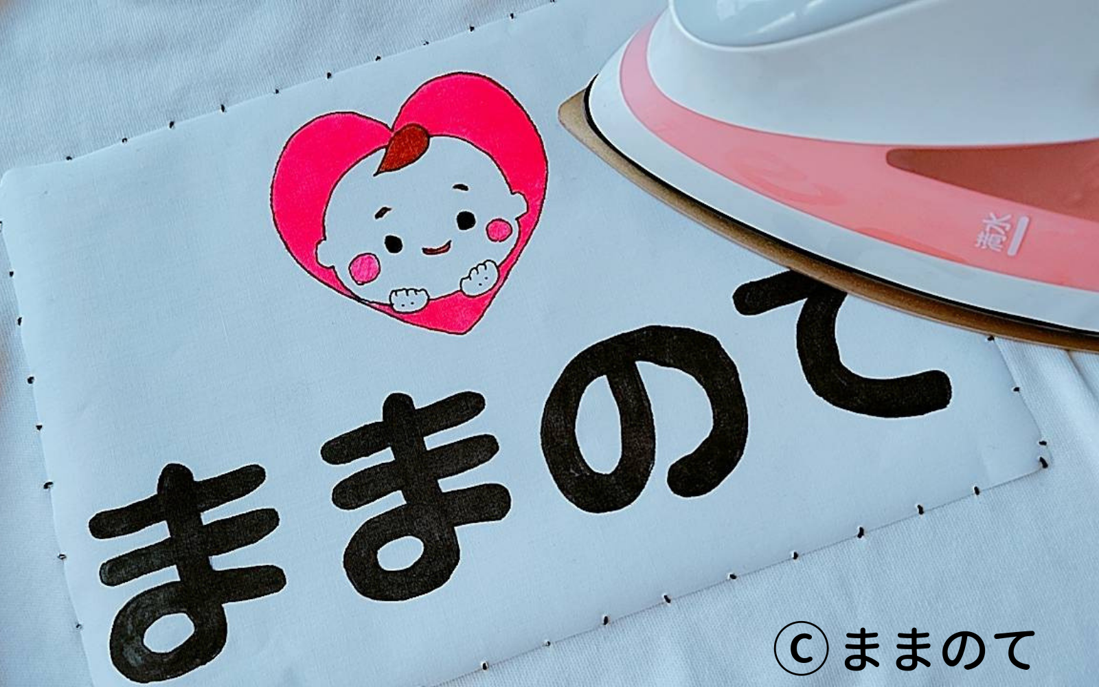 ゼッケンを縫う位置が決まったら、いったんアイロンでしわを伸ばしておくと仕上がりがきれいです。