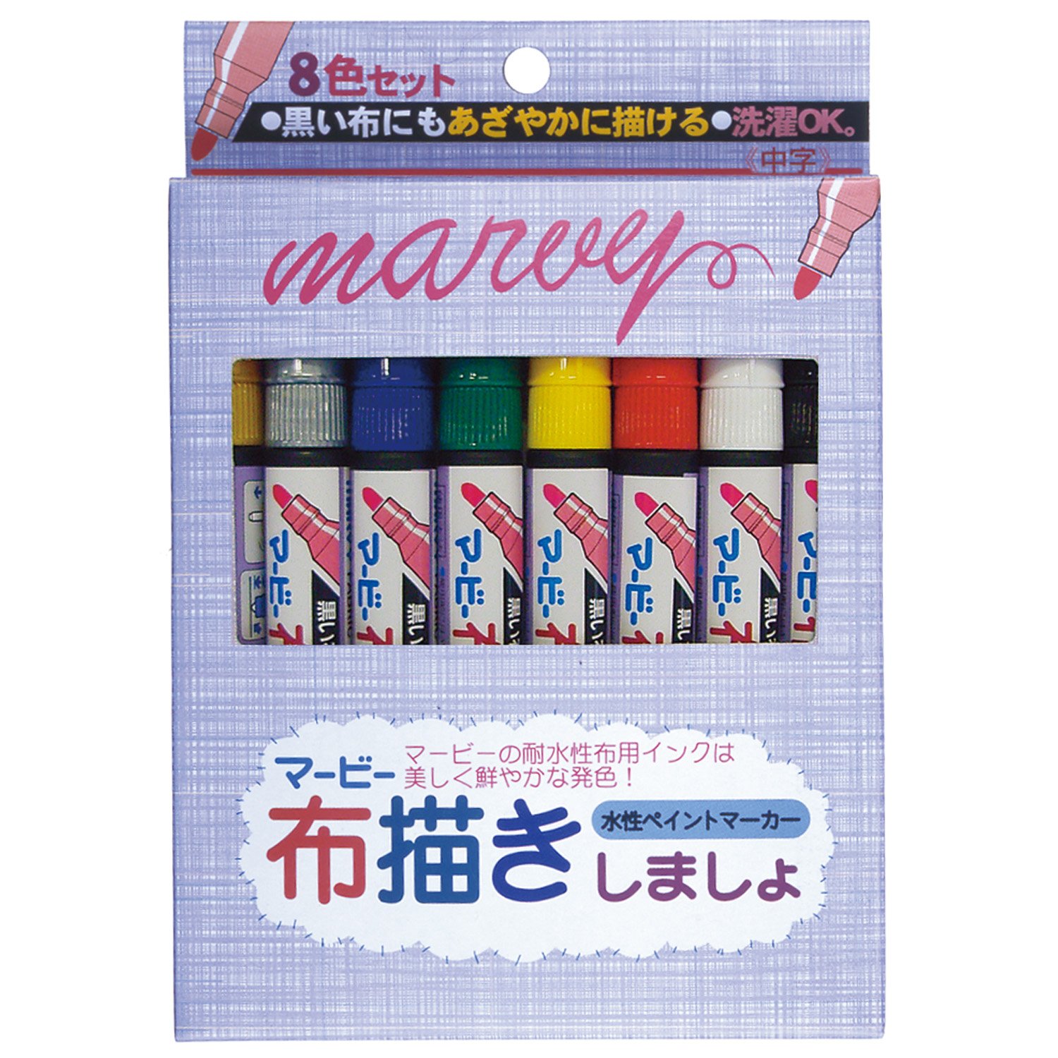 ペン先を押すとインクが出てくるタイプの布ペンです。家庭でも気軽に洗濯できるよう、耐水性が高く色あせしにくいインクを使用しています。カラーが豊富なセットなので、さまざまな色の布に文字やイラストを書く際にもおすすめですよ。