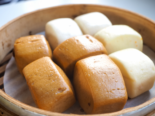 5.容器に入れた生地を蒸し器に入れ、中火で5~10分蒸してできあがり。