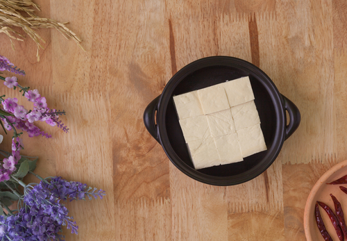 1.木綿豆腐を耐熱性のお皿に入れる。